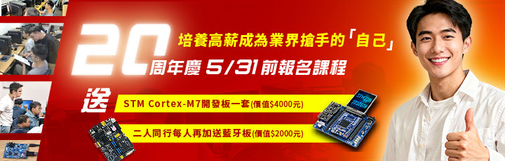 課程的階段性銜接脈絡清晰、循序漸進,技術講師群自行研發開發平台搭配多樣的周邊感測模組實作教學,有助於學員在時程內完整吸收課程精華,快速踏入物聯網領域並擁有專業能力與職場競爭力。