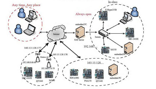99年領先同業率先提出補教最新遠端嵌入式系統3A開發實作學習環境,3A 為Anytime 、