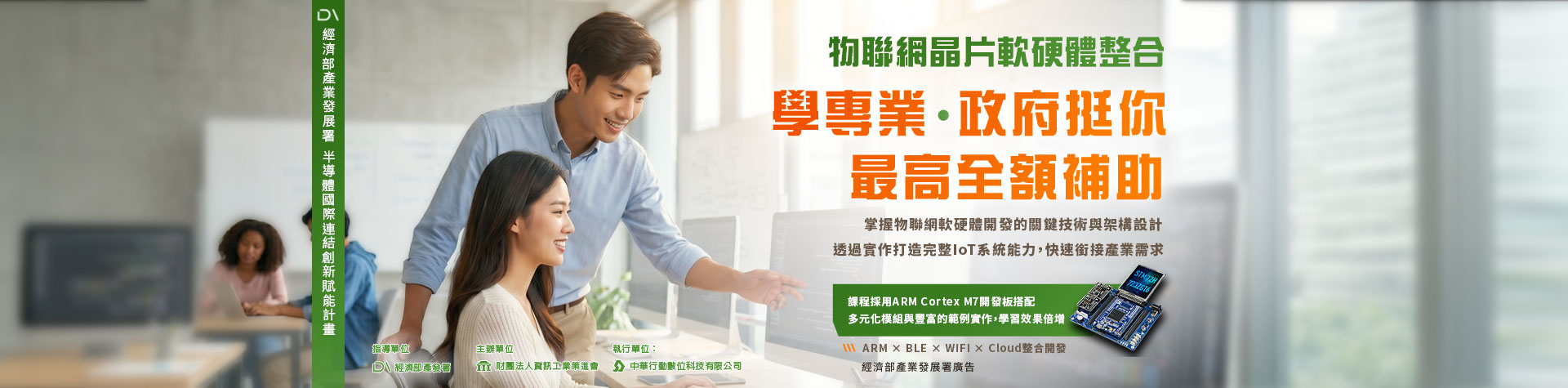 課程以ARM單晶片為核心,帶領學員系統化學習 **Wi-Fi 與藍牙(BLE 4.0)**的整合應用,並透過實作掌握物聯網雲端伺服器建置與通訊架構設計。課程採用高度整合的藍牙晶片(內建ARM Cortex-M核心與BLE4.0硬體協議堆疊),搭配本中心開發之周邊感測模組,深入解析物聯網通訊技術的原理與實務要點。學員將親自完成感測器資料擷取、無線傳輸、雲端通訊與系統整合,並透過 BLE 與 Android 手機進行資料交換與控制,建立從韌體到應用端的完整 物聯網軟硬體整合能力。