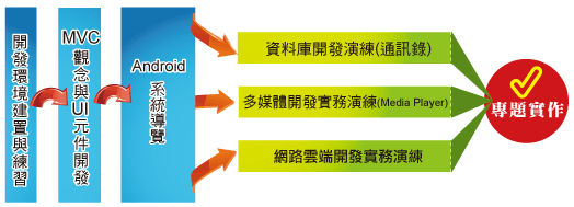 Android 雲端應用程式開發課程以業界需求的 Java 技術為主,完全不具程式設計基礎開始,由淺入深且實務操作的方式,逐步將學員培養成為能夠獨立自行開發 Java 與 Android 雲端應用程式。並且透過 Java 跨平台特性,讓你具備 Android 雲端應用程式的開發能力。課程的階段性銜接脈絡清晰、循序漸進,有助於學員完整吸收課程精華,快速進入 Java 與 Android 雲端應用程式開發領域並擁有專業的就業競爭力。