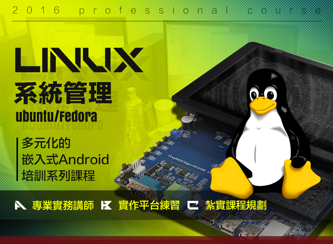 Linux課程將詳細的介紹Linux系統安裝及主機管理、Filesystem架構、熟悉UNIX Command及Kernel Compiler。